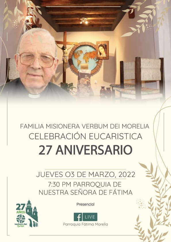Después de dos años de espera y con un corazón profundamente agradecido al Señor, llegó el momento de festejar los 27 años de fundación de la FaMVD en Morelia, con una celebración Eucarística el jueves 03 de marzo a las 7:30 pm en la Parroquia de Fátima y el sábado 05 de marzo a las 5:30 pm, con todas las medidas de sanidad, con el Concierto de Martín Valverde, en el Palacio del Arte de está hermosa ciudad de la cantera rosa Morelia, Michoacán.