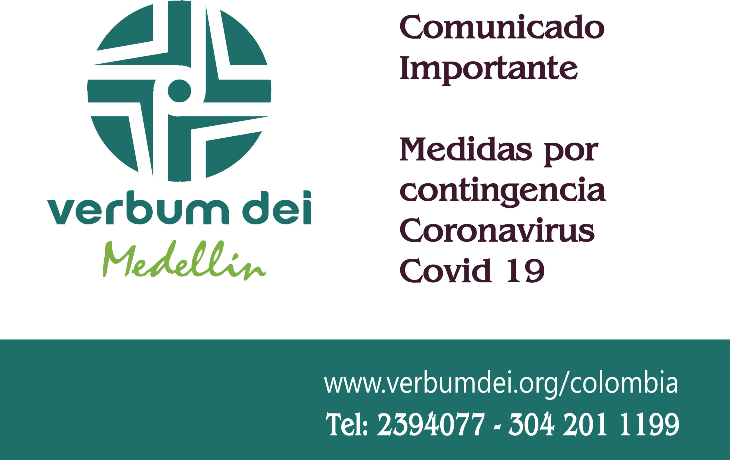 Les compartimos el comunicado de la Arquidiócesis de Medellín el cual pueden descargar en este link y las que en nombre propio nosotros como Fraternidad Misionera Verbum Dei de Medellín queremos informar, y que pueden descargar en este link y a su vez transcribimos a continuación: