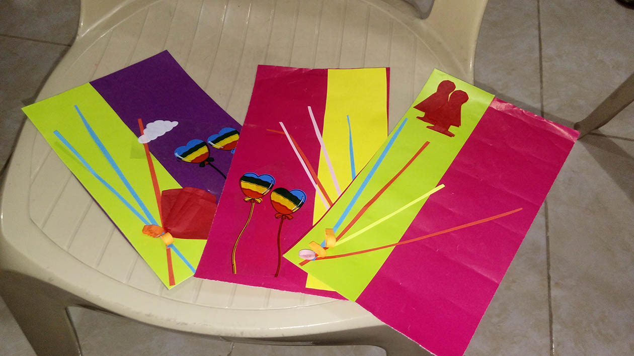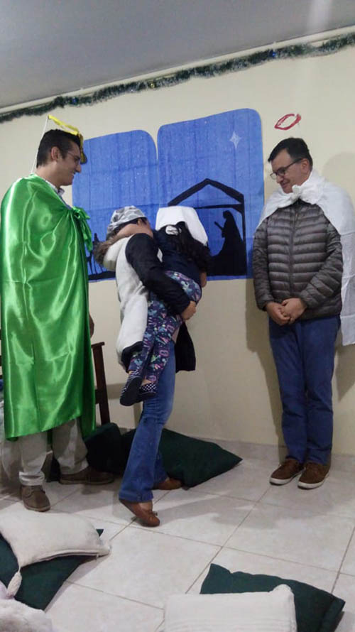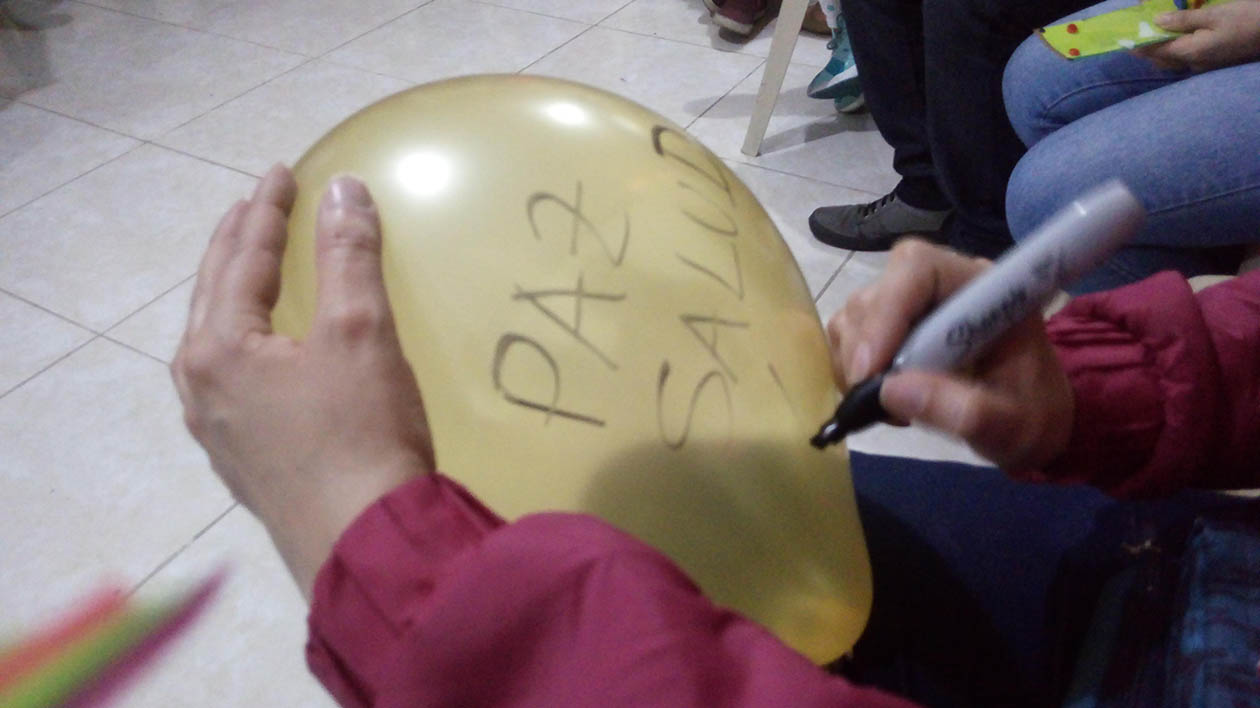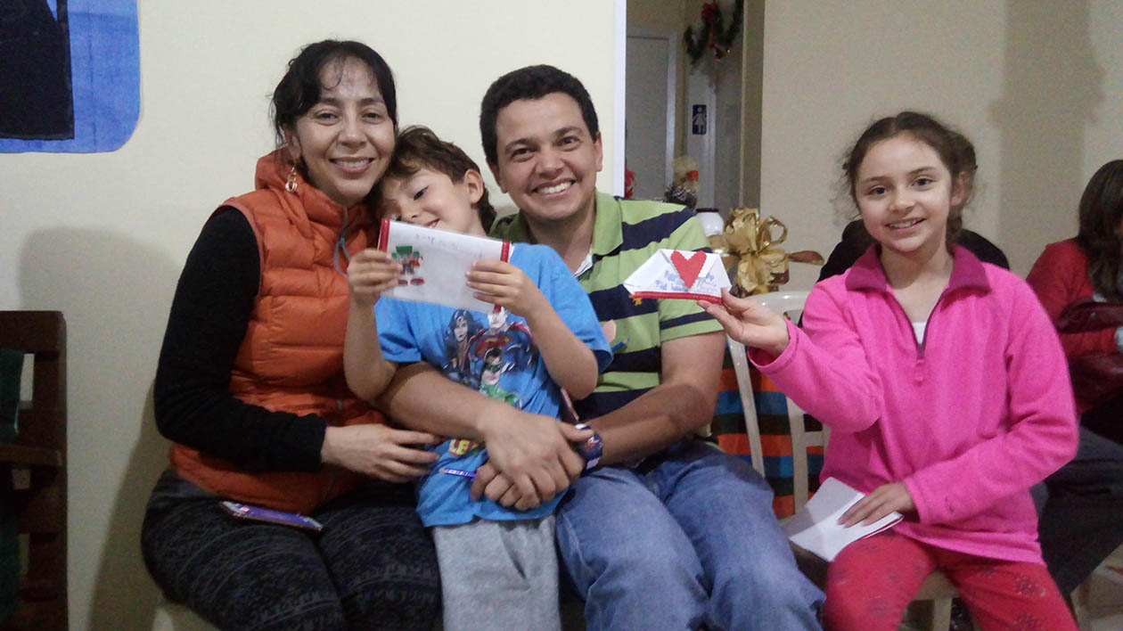 Hijos y papás realizaron artesanalmente tres tarjetas las cuales se comprometieron a entregar a tres personas o familias que cada uno considere necesitan recibir el mensaje de Dios en esta navidad, e internamente entre las familias que se encontraban en el lugar, se intercambiaron mensajes especiales plasmados en un globo.