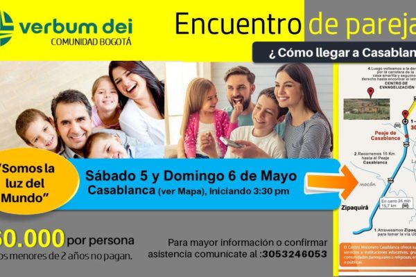 Encuentro de Parejas Bogotá «Somos la Luz del Mundo» Mayo 5 y 6 – Centro Misionero Casablanca