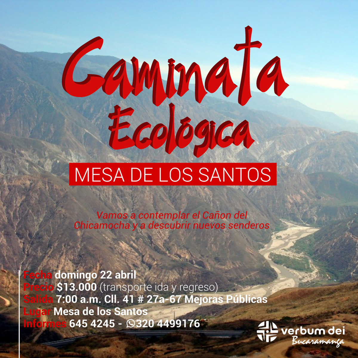 Tenemos el gusto de invitarlos este domingo 22 de abril a la Caminata Ecológica. Será un día de descubrir nuevos senderos y de contemplar la belleza de nuestro Dios en la creación. Importante llevar gorra, protección solar, hidratación y la mejor actitud para deleitarse con la naturaleza.