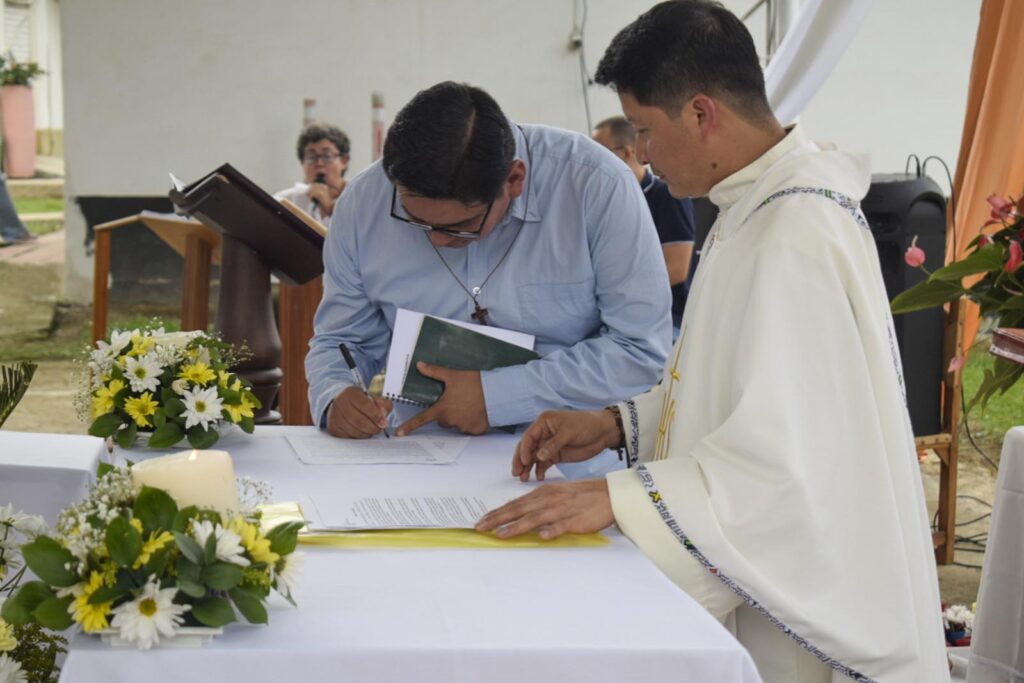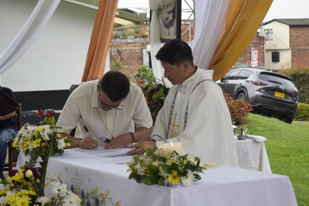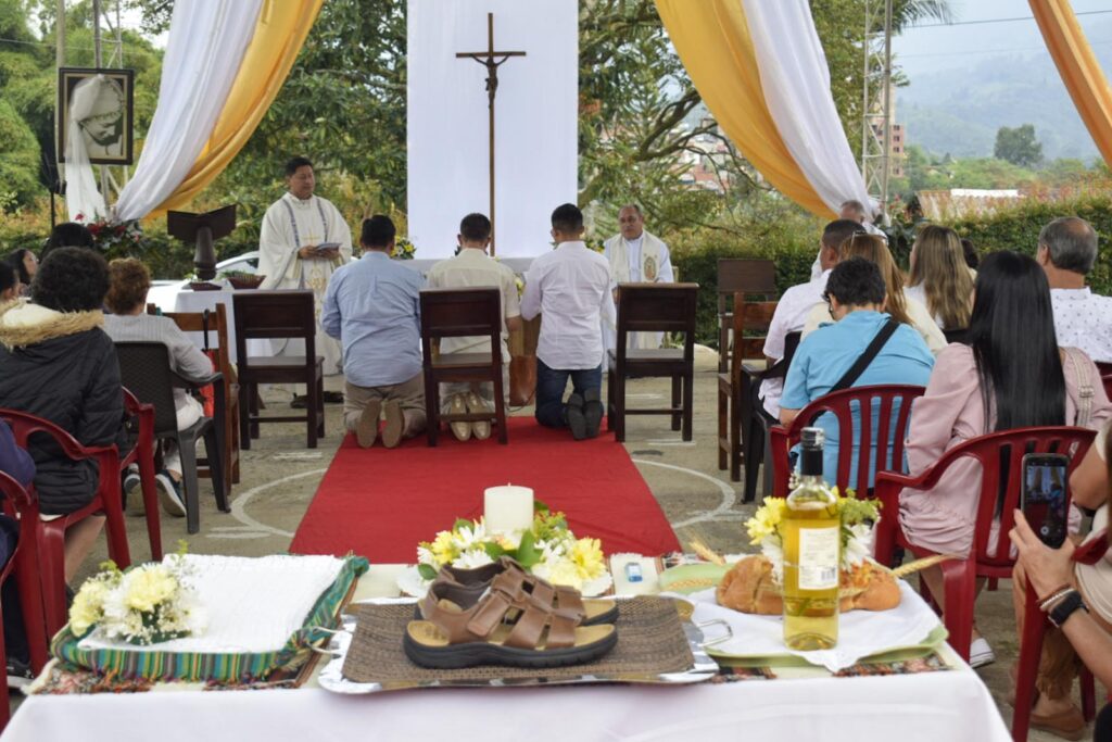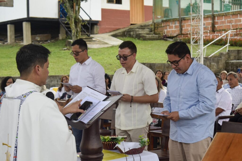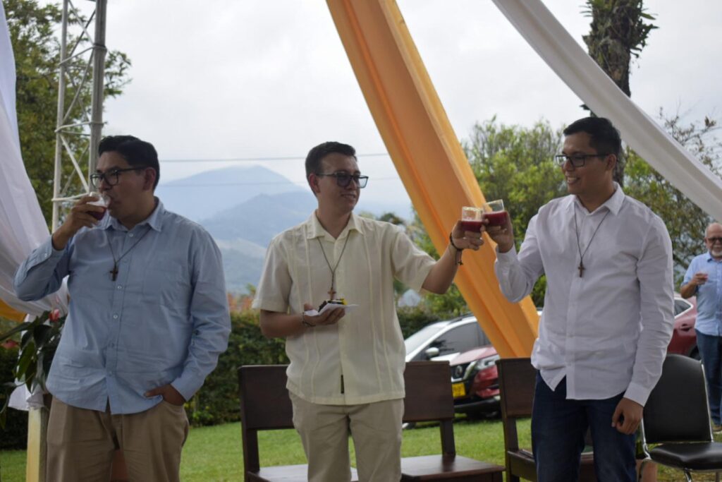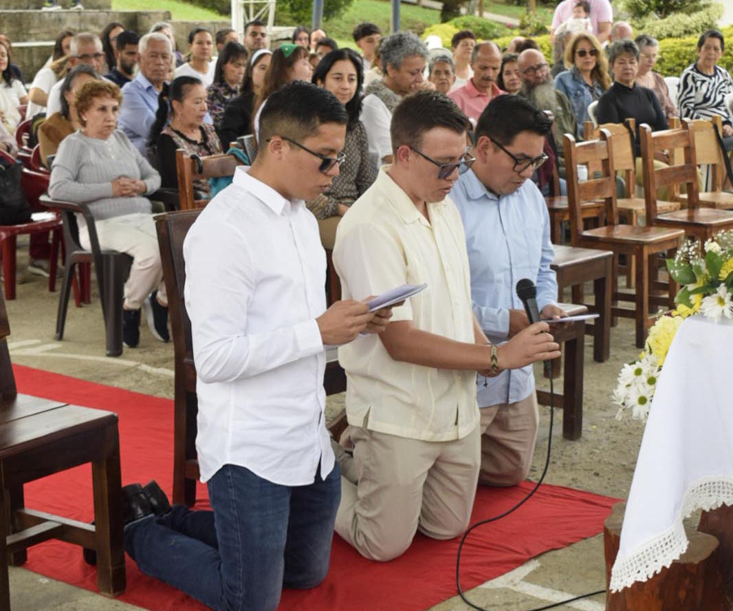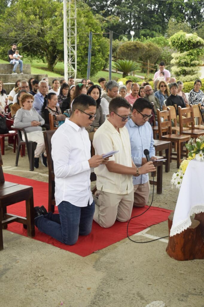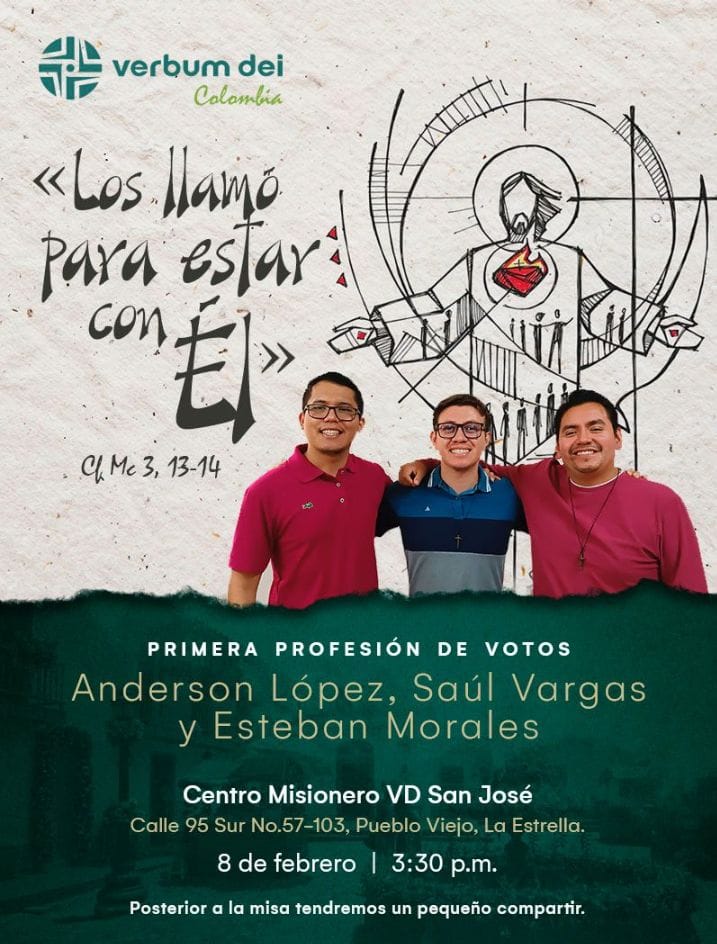 Con profunda felicidad, el grupo de formación de misioneros Verbum Dei, celebró el pasado 08 de Febrero de 2025, la Primera Profesión de Votos de Anderson López, Saul Vargas y Esteban Morales, quienes en compañía de un nutrido grupo de misioneros, misioneras y matrimonios misioneros de la Fraternidad Colombia mas algunos discípulos se congregaron en el Centro Misionero San José La Estrella (Antioquia) para festejar su consagración a Dios y a la Iglesia en el carisma Verbum Dei.